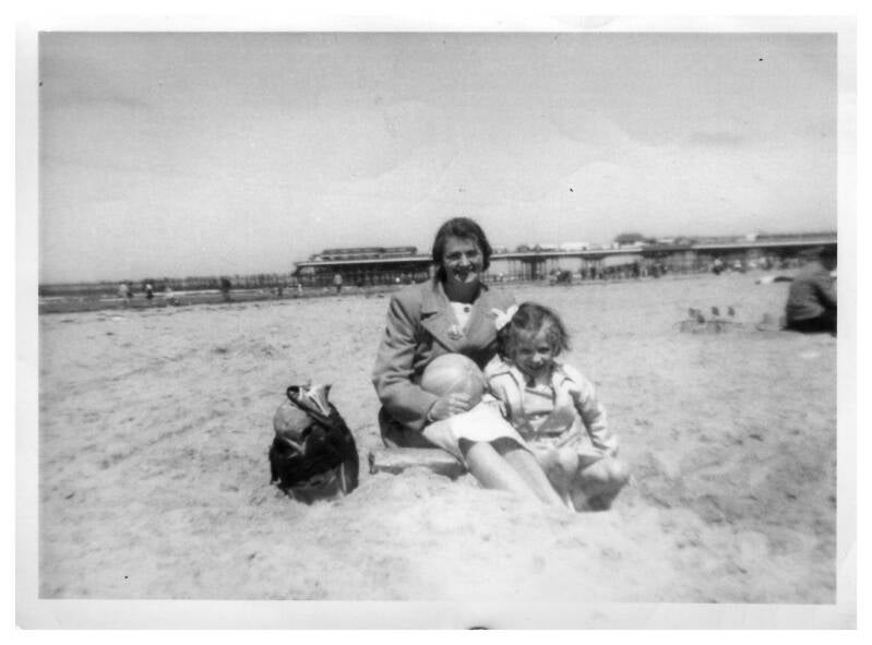 PHOTOGRAPHS: Clockwise from top left May and Fred, May and Fred outside the front of Evadene, May and Fred at the Italian Garden in Stanley Park, Blackpool, Mays business card, Pamela Elise Williams, May and Pamela on the beach at Blackpool, May and Fred, finally May and Fred in the early days